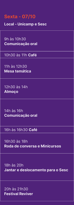9h às 10h30 – Salas de aula da FEF/Unicamp